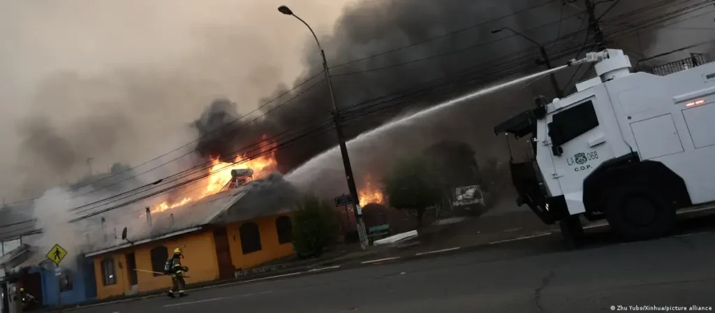 Varios megaincendios originados el sábado han destruido hasta ahora más de 40.000 hectáreas en las regiones de Ñuble y Biobío, a 400 y 500 kilómetros al sur de la capital, respectivamente, y han destruido más de 800 viviendas.